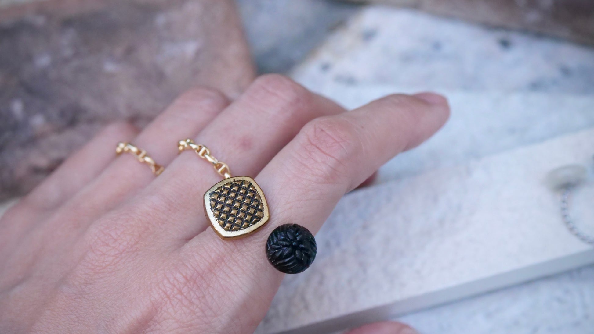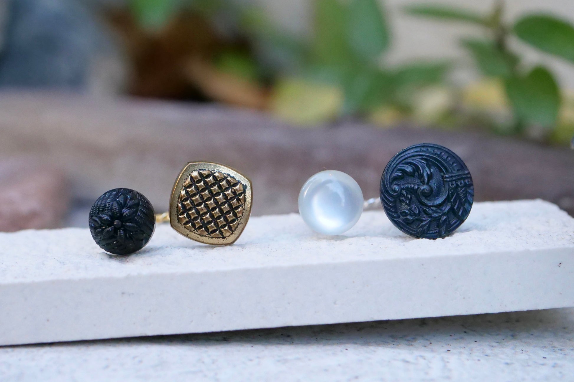 サイズ:ボタン直径約1cm・約0.8cm リングサイズ(free)調整可能